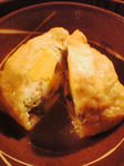 油揚げにタマゴ、豆苗、シメジを入れて、いい具合に味噌仕立てにしてみました!